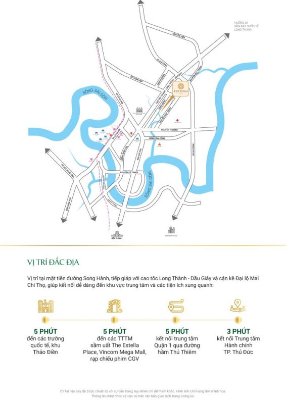 • 5 phút: Vincom Mega Mall, Estella Place, Mega Market, rạp chiếu Lotte