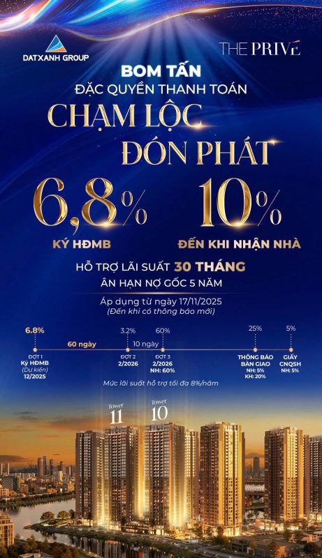 Điểm khác biệt lớn nhất của căn hộ The Privé chính là chính sách thanh toán độc quyền cho Block 11 – điều chưa từng thấy ở các dự án cao cấp cùng khu vực: