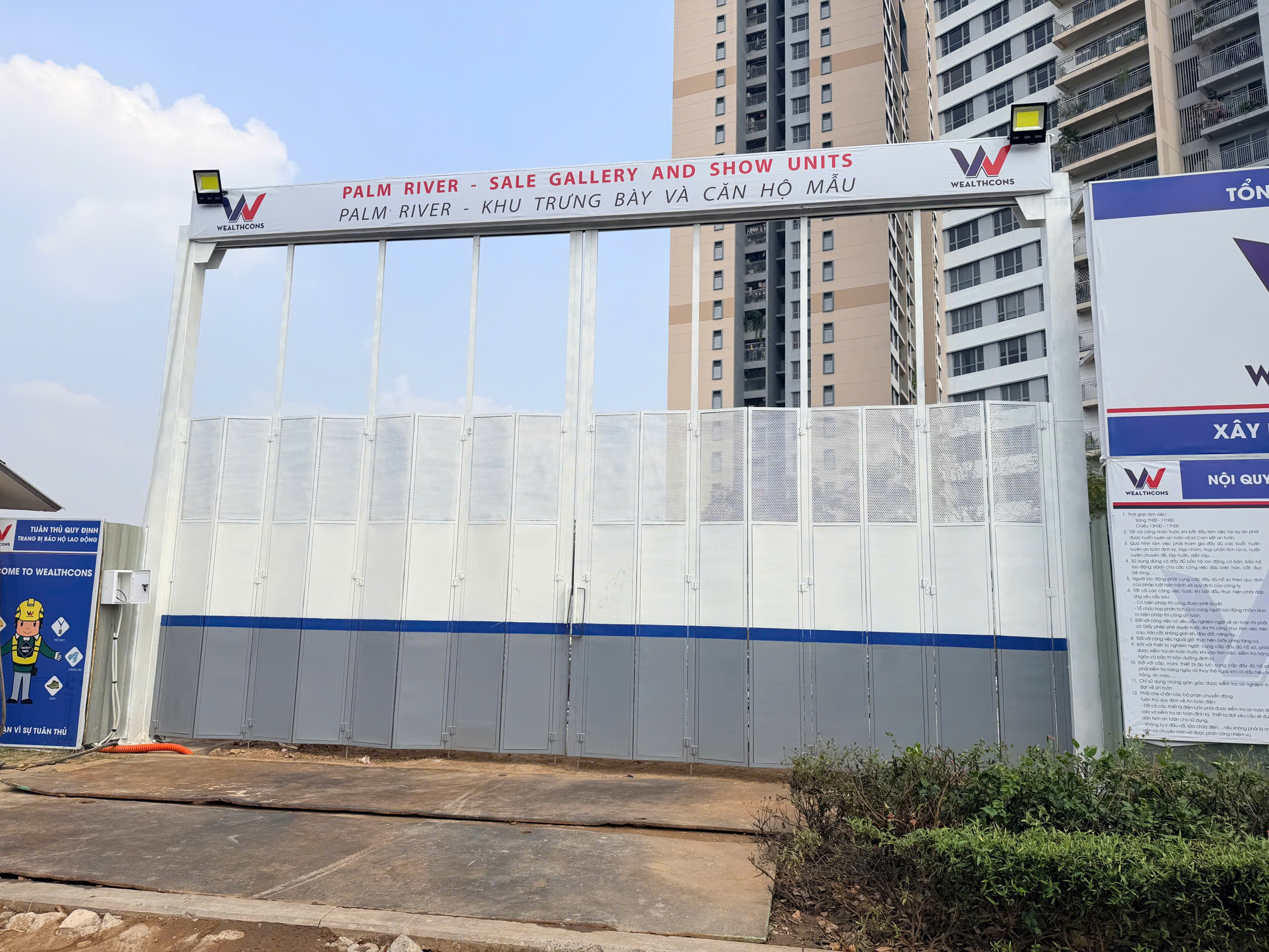 Hiện tại, Palm River đã hoàn tất công tác rào chắn, dựng bảng dự án chỉn chu, đồng thời đang triển khai các bước chuẩn bị mặt bằng để sẵn sàng bước vào giai đoạn thi công chính thức trong thời gian tới. Đây là dấu hiệu rất tích cực, cho thấy dự án không còn nằm trên “kỳ vọng”, mà đang dần hiện hữu ngoài thực tế.